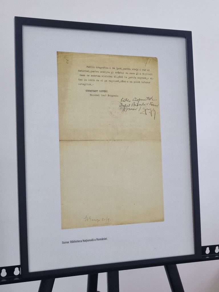 Un document aparte al colecției este semnat de generalul Ernest Broșteanu, comandantul Diviziei a XI-a Române, care transmitea în ziua de 25 august 1917, către comandantul Armatei I-a: